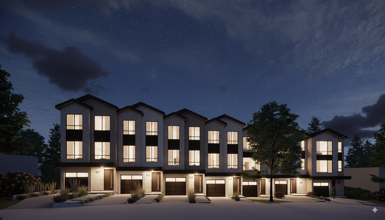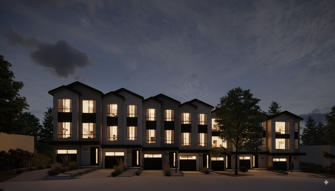 Luxury townhomes nestled in serene Buckingham Heights — sophisticated living, naturally inspired.