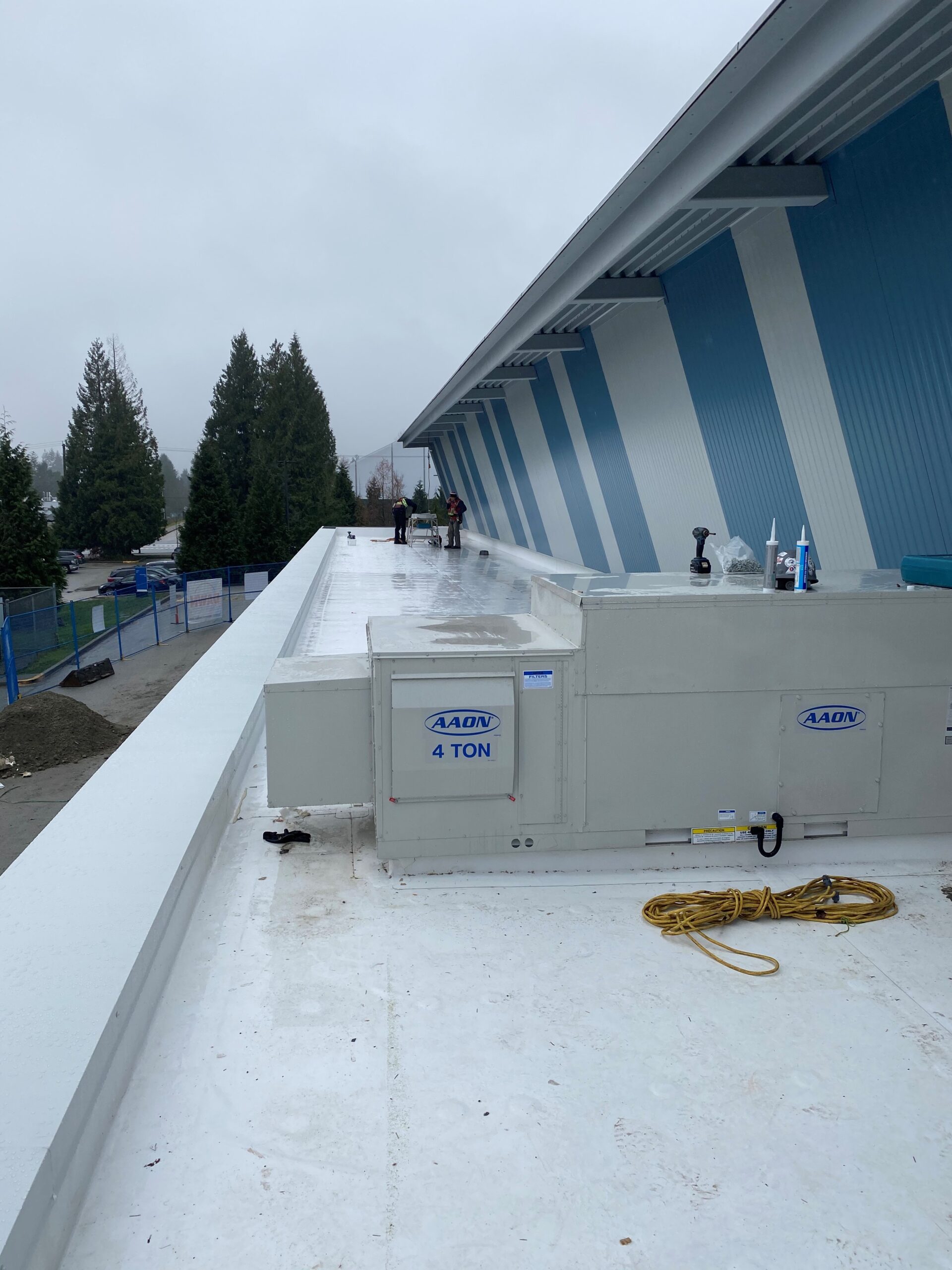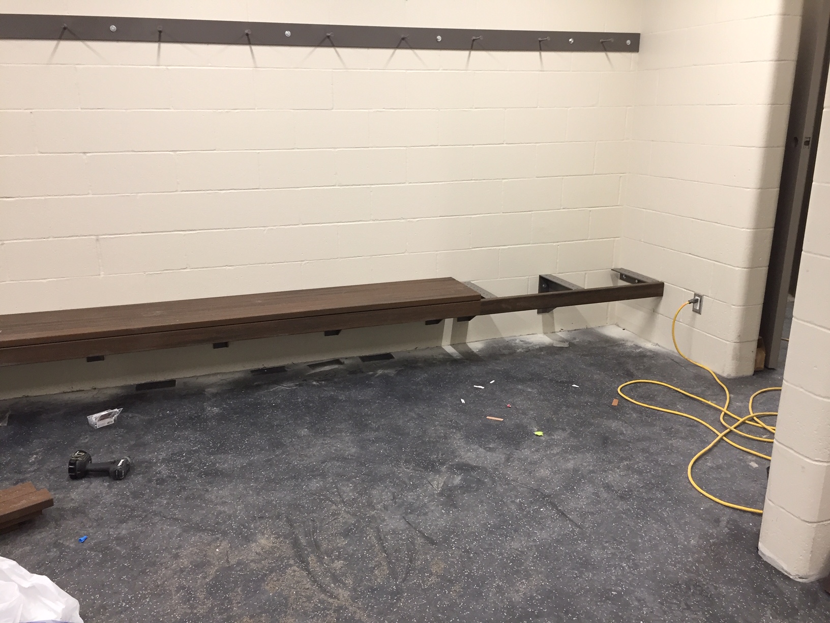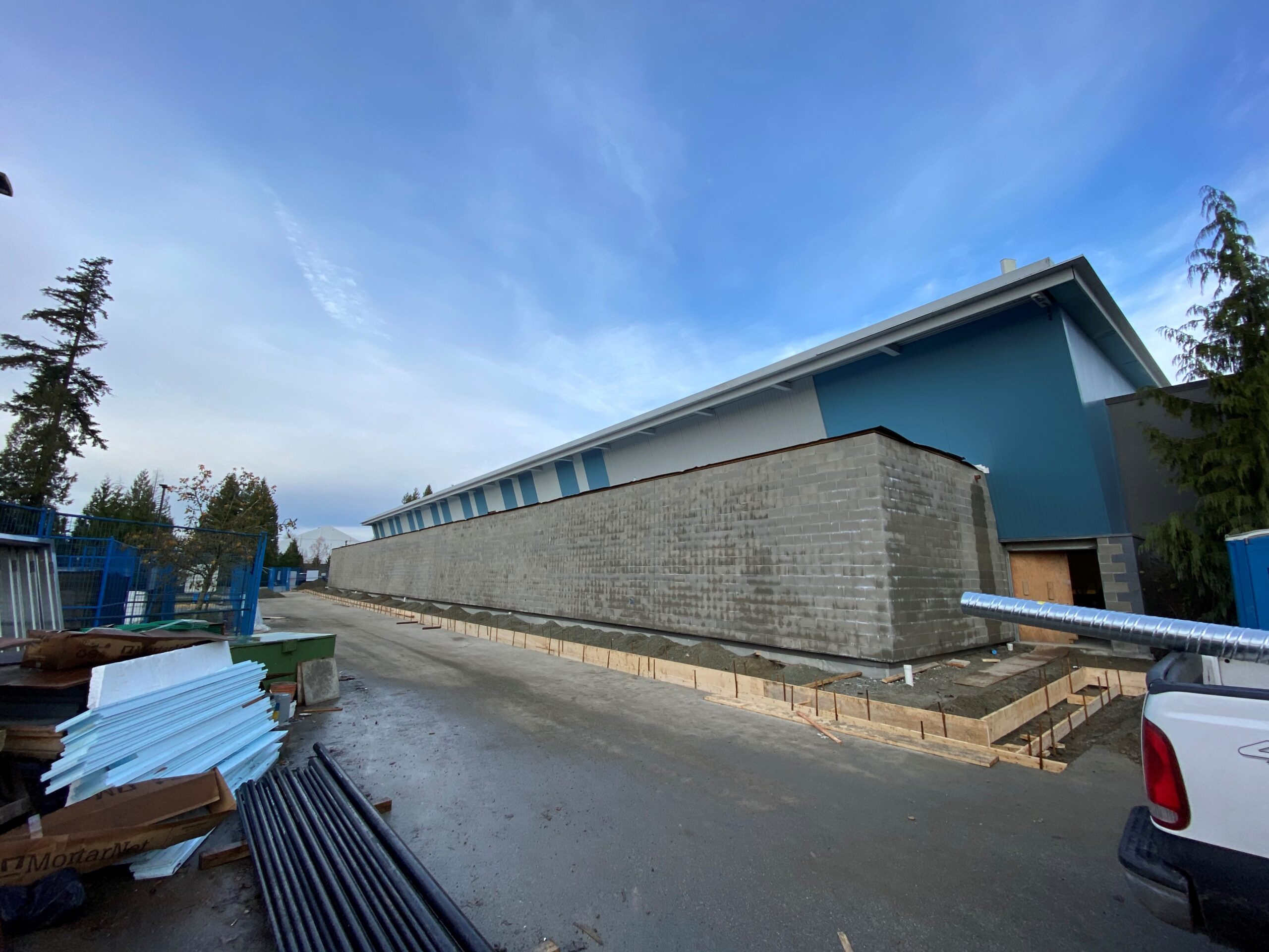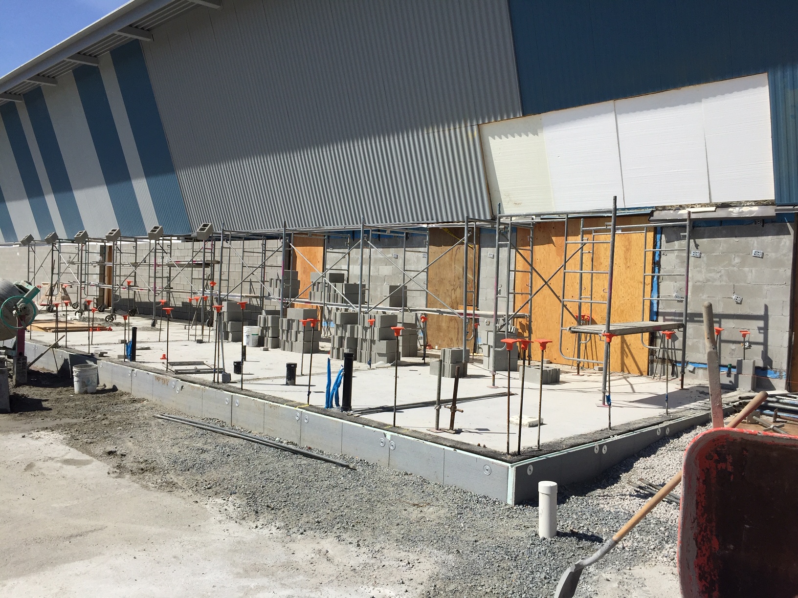 Scope for Poirier was an addition for shower/change rooms for the pool with tie into the existing structure. This was achieved with concrete block wall construction, integrated drain troughs in the slab on grade, steel roof framing, and heat traced sprinkler lines.